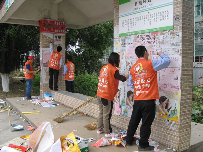 为积极响应开展学雷锋全民义工服务行动月活动的号召,3月21日早上,开平汽车总站组织义工开展“弘扬雷锋精神,共建幸福开平”为主题的义务清洁“学雷锋”活动,义务清洁开平市325国道沿线以及市区周边的农村客运候车亭,主要是清除候车亭内外的广告贴纸和清理候车亭周边的生活垃圾,为广大群众营造干净、舒适的候车环境。(谭俊杰 摄影报道)